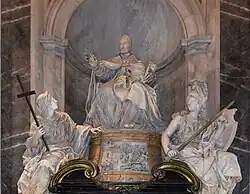 He built a magnificent tomb in St. Peter's Basilica in Rome to honor his uncle, who died in 1689, which was finished by 1704. Due to his position as Captain General Livio would also play a significant role during the papal conclave of 1689, which elected Pietro Vito Ottoboni as Pope Alexander VIII.[8]