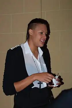 Her first call up to the senior national side was in 2008,[9] and she had her first cap for the Australian Opals in 2009 in a test series against China,[39] went she played in the third game in the series.[40] On 2 September 2009, she played in the Canberra hosted return game against New Zealand in the Oceania Championship,[41] and she was a member of the Australian senior women's team that won a gold medal at the Oceania World Qualification Series.[37] She was a member of the national team again in 2010.[42] In June 2010, she was viewed by national team coach Carrie Graf as one of a quartet of strong players that would represent Australia in a tour of China, the United States and Europe.[43] In 2010, she participated in the Salamanca Invitational Basketball Tournament in Spain. Her team beat Spain 85–64. They also beat the United States. She scored 20 points in the game against Spain.[44]