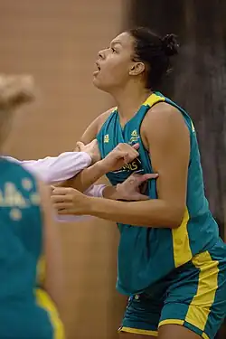 In 2010, she was a member of the senior women's national team that competed at the World Championships in the Czech Republic.[9][38] She was important to the team's success.[8][45] In July 2010, she participated in a four-day training camp and one game test match against the United States in Connecticut,[43] but missed the Olympic qualification series in July 2011 because of WNBA commitments.[19] Nonetheless, she was named to the 2012 Australia women's national basketball team.[46]