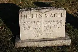 Magie died at the age of 81 in 1948. She was buried with her husband Albert Wallace Phillips, who had died in 1937, in Columbia Gardens Cemetery, Arlington, Virginia.[10] Magie died without having any children.[11] At her death, she was not credited for the impact that she had on the board game community and American culture.[12]