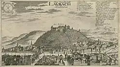 - ^ a b Peter Štih (2010). Castrum Leibach: the first recorded mention of Ljubljana and the city's early history: facsimile with commentary and a history introduction (PDF). City Municipality of Ljubljana. ISBN 978-961-6449-36-6. Archived from the original (PDF) on 2016-03-03. COBISS 252833024