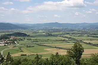 The western rim of the Ljubljana Marsh, viewed from St. Anne Hill above Podpeč