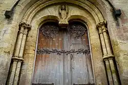 Bishop Henry de Abergavenny organised the Llandaff Cathedral chapter circa 1214. He appointed fourteen prebends, eight priests, four deacons and two sub-deacons. De Abergavenny also made changes to Llandaff's episcopal seal, giving more detail to the figure of the bishop depicted on it and adding the phrase "by the grace of God" to its inscription.[17][18] The west front dates from 1220 and contains a statue of St Teilo.[19][20] By 1266, the structure that Urban began had been altered; the cathedral was dedicated again in 1266.[21]