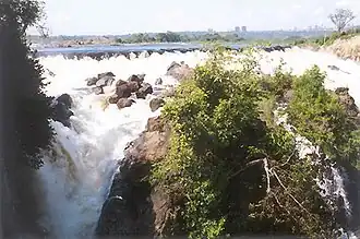 Llovizna Falls is a waterfall on the Caroní River, close to its confluence with the Orinoco, located in the Llovizna Park, Puerto Ordaz, Venezuela. The nearby Macagua Dam has reduced the flow over the waterfall in recent years, but the cascade continues to be spectacular and returns to its former glory several times a year when the floodgates of the dam are opened.