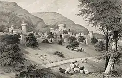 The Lloyds of Gwrych resided at 'Plâs yn Gwrych' in a coastal strip between Abergele and Llanddulas.[4] Over successive generations from the sixteenth century, the family created a gentry seat with formal gardens, estate buildings, a bathing house at Ty Crwn and extensive walled gardens.[5]