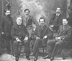 With Adrià Gual as stage director of his theatrical companies, he revived the theory of the "popular song harmonized for the stage" that the playwright Gual had essayed in 1897 with Blancaflor and adapted it to present his own proposal of the "musical visions".[5] This genre of Catalan lyric theater aimed to stage pieces from Catalan folklore (songs, legends and tales) as performances of short duration, symbolist aesthetics and great impact and visual suggestion.[6] These "musical visions" were the main stage repertoire of the sala Mercè and their success made Lluís Graner rent the Teatro Principal of Barcelona when it was put out to auction in 1905 in order to accommodate more spectators for his shows.
