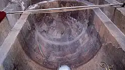 The apse of the church has important 7th-century frescoes,[1] with remnants of scenes depicting Jesus in the center surrounded by symbols of heavenly powers. There is also an image of Saint George riding on a horse while holding a staff topped with a cross.