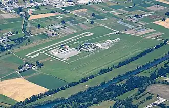 International Locarno Airport[a] (ICAO: LSZL), mil ICAO code LSMO, also known as Locarno-Magadino Airport, is an airport located near the city of Locarno, Ticino, Switzerland. It is a mixed civilian and military airport. The airfield is used simultaneously by civilian aircraft and the Swiss Air Force from the "airfield command Locarno". Although they use the same runways, the Swiss Air Force has its own taxiways and parking and a large hangar. It is located in the community of Gordola, seven kilometers east of the Locarno city center. The nearest stop to the Swiss Federal Railways is the 2 km distant station Riazzino of railway Giubiasco Locarno.