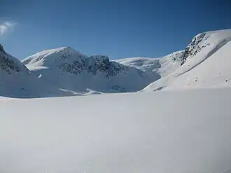 Loch A'an is a remote freshwater loch set deep within the central Cairngorms plateau, in the Cairngorms National Park, located in the eastern Highlands of Scotland.[2][1] Loch A'an, also called Loch Avon, is the source of the River Avon.[3] Loch A'an is oriented southwest–northeast and is bounded on three sides by precipitous mountains, cliffs and crags, with the North-East opening out to provide an outflow for the river through Glen Avon.