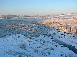 In the bottom of the loch piles or stakes of oak or elm have been found at various times and are thought that these may be the remains of crannogs or connected with fishing on the loch.[2][3] Dobie, writing in 1876 states that the loch was drained about 60 years ago, thus about 1826.[4] The 'cut' through the natural dam that once held back the loch waters below Boghall is clearly visible. The Boghall Burn runs from a drainage ditch through this 'cut'.