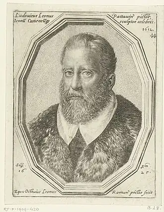 His son, of the same name, nickname and career, was born in Rome, and died at the age of 52 years.[3][4][5] Baglione refers to his son as Ottavio.[6] Luigi Leone is different from the contemporary sculptor, Leone Leoni.