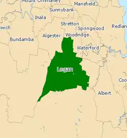 In the 1959 redistribution, the Logan electoral district was re-created in the Redland Shire, largely replacing the Electoral district of Darlington. Logan electoral district was abolished again in the 1971 redistribution, by replaced by the Electoral district of Redlands.[1]