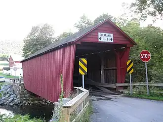 This historic structure is a 55-foot-long (17 m) 12-foot-wide (3.7 m), Queen post truss bridge. Built in 1874, it crosses the Fishing Creek, and is the only remaining covered bridge in Clinton County.[2] It is one of the principal attractions in Sugar Valley.