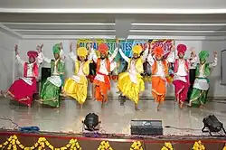 Singing and dancing form an intrinsic part of the celebrations. In Punjab, people wear their brightest clothes and come to dance the bhangra and giddha to the beat of the dhol. Punjabi songs are sung, and everybody rejoices. Sarson da saag with makki di roti is usually served as the main course at a Lohri dinner. Lohri holds great importance for farmers. However, people residing in urban areas also celebrate Lohri, as this festival provides the opportunity to interact with family and friends.[34]