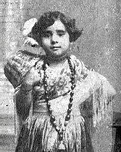 María Dolores "Lola" Flores Ruiz (Spanish pronunciation: [ˈlola ˈfloɾes]; 21 January 1923 – 16 May 1995[1]) was a Spanish actress, bailaora (flamenco dancer) and singer. Born in Jerez de la Frontera, Flores became interested in the performing arts at a very young age.[2] Known for her overwhelming personality onstage, she debuted as a dancer at age sixteen at the stage production Luces de España, in her hometown. After being discovered by film director Fernando Mignoni, Flores moved to Madrid to pursue a professional career in music and film, with her first gig being the lead role in Mignoni's Martingala (1940). Flores succeeded as a film and stage actress. In 1943 she obtained her breakthrough role in the musical stage production Zambra alongside Manolo Caracol, in which she sang original compositions by Rafael de León, Manuel López-Quiroga Miquel and Antonio Quintero, including "La Zarzamora" and "La Niña de Fuego", mostly singing flamenco music, copla, rumba and ranchera.[3] She then started to receive widespread media coverage.