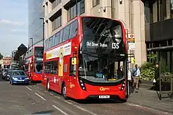 Upon being retendered, operation the route was taken over by Tower Transit's Lea Interchange bus garage on 21 May 2022 using Wright Gemini 3 bodied Volvo B5LHs formerly used on route 328.[7] The route was included in the sale of Lea Interchange bus garage to Stagecoach London on 25 June 2022.[8][9]