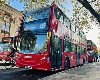 London Buses route 139 is a Transport for London contracted bus route in London, England.[2] Running between Golders Green and Waterloo stations, it is operated by Metroline.[3][4][5][6]