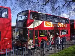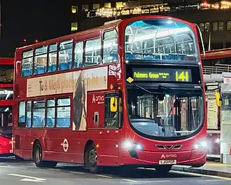Upon being re-tendered, route 141 was retained by Arriva London with a new contract commencing on 12 January 2013.[4] In August 2014, a bus on the route was used to test technology that displays seat availability on a screen at the base of the stairs. [5][6][7]