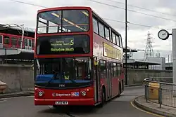 Having been altered to operate between Becontree Heath bus station and Canning Town bus station, from privatisation it was operated by East London. On 25 March 2006 it was extended east to Romford Market replacing route 87.[5] On 14 May 2011, the last AEC Routemaster, RML2760 built, operated a special service for charity on route 5 between Romford and Barking.[6]