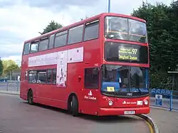 On 10 September 2011, route 97 was extended from Leyton to Stratford City bus station to coincide with the opening of Westfield Stratford City.[7] On 31 August 2013, the route was diverted to serve the new residential precinct around the Queen Elizabeth Olympic Park.[8] Sister route 97A operated from 1981 and 2000 between Chingford and Walthamstow Central with various extensions to Leyton, Hackney and latterly Whipps Cross. It was replaced by route 357.
