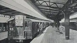 Although it was not the only stock to have gates, the 1906 Stock seemed to be the only one that earned the nickname "Gate Stock". Entry and exit was by the end platforms, being protected by lattice gates, and operated by gate-men stationed between cars. The gate-men opened and shut the gates as well as passing the signal to start from car to car until the driver received it.[3]