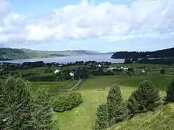 ![]() Looking North-East down the main Londubh road, at the croft in fields from the common grazing. Loch Ewe in the background. | |