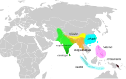 Subspecies longicaudatus has a greyer crown and is found in Thailand and Burma. The nominate subspecies is found in China from the Yangtze valley south to Hainan and Taiwan. Some individuals of the nominate form show melanism and were once described as a species fuscatus.[9][14] Island forms include nasutus (Philippine Islands from Mindanao to Luzon and north Borneo), suluensis (Sulu Island), bentet (Sunda Islands and Sumatra other than Borneo) and stresemanni of New Guinea.[4]