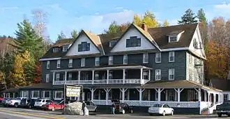 Long Lake is part of the 1.1 million acres (4,500 km2) acquired from the Mohawk nation as part of the 1771 Totten and Crossfield Purchase.[8] Long Lake is a glacial widening of the Raquette River and is part of the water route that connects the Fulton Chain Lakes with the Saint Lawrence River drainage. This route was frequently traveled by guideboat in the mid-late 19th century. At that time, "a typical trip might start at the Saranacs from which a party could make its way to the Raquette River via Indian Carry and Stoney Creek."[9] The trip continued "via the lakes accessible from it— Long, Raquette, Forked, Blue and Tupper."[9] Settled by the 1830s, Long Lake was isolated, except by water, until William Seward Webb's Mohawk and Malone Railway was built through what was then known as Long Lake West in 1892. Long Lake and Long Lake West were connected by a stage route. The Mohawk & Malone Railway was taken over by the New York Central and Hudson River Railroad in 1894, and was merged into the New York Central Railroad in 1913. Passenger rail service on the NYC ended on April 24, 1965. The town of Long Lake West was later renamed Sabattis, after Peter Sabattis and his son Mitchell Sabattis, the Abenaki Indian guides who came down from Canada and first settled in this area, followed by a long line of their offspring and family.