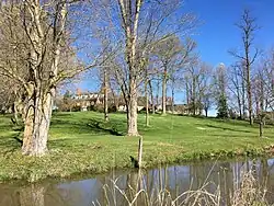 Long Meadows is a historic home located near Hagerstown, Washington County, Maryland, United States. In 1739, Thomas Cresap was granted 400 acres (1.6 km2) which he named Long Meadows, where he is said to have erected a stone and log fort over a spring near the Marsh Run. Stones from the fort are said to have been used in the construction of the barn wall located on the property.[2]