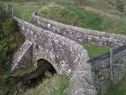 A packhorse route called a saltway was maintained from the Middle Ages onwards for the purpose of allowing the export of salt from the Cheshire wiches of Nantwich, Northwich and Middlewich across the Pennines. The passing trade brought prosperity to settlements along the route. The importance of the salt trade along such saltways is shown by surviving placenames; for example Salter's Brook (SK137999) is where the saltway forked, with one route leading to Wakefield and another to Barnsley. The stone Lady Shaw Bridge still exists at this point, as do the ruins of an old inn. The bridge is just wide enough for a packhorse, though it is suspected that the bridge may have originally been wider and was deliberately narrowed when the Saltersbrook turnpike was built, to prevent vehicles bypassing the toll barrier.[8]