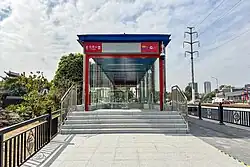 During the EIA announcement of Line 11, the proximity of the station to the Haizhu Wetland Park and the fact that two entrances and exits entered the planned land area of the wetland park caused concern among citizens and environmental groups.[7] In order to protect the environment of the wetland park, Line 11 cancelled the subway entrance on the sidewalk at the entrance of the wetland park in the follow-up plan.[8]