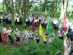 On 22 August these Scouts retraced Baden-Powell's route from the former Fourstones railway station to the Carr Edge site, where a commemorative service was held (pictured).[8][9]