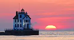 The 1924 Lorain–Sandusky tornado hit the city on Saturday, June 28, 1924. The tornado formed over the Sandusky Bay during the late afternoon hours and hit Sandusky, where it killed eight people and destroyed 100 homes and 25 businesses.[11] After moving east over Lake Erie for several miles, the tornado then struck Lorain, killing 72. Among the dead were 15 people inside a collapsed theater, which makes it the worst tornado-related death toll from a single building in Ohio. Eight people were also killed inside the Bath House near the location where the tornado came onshore.[11]