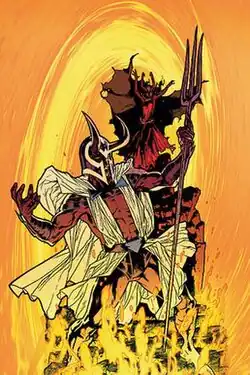 The children of the Wizard Shazam, both siblings are recognized as major demons with significant mystic power, holding high-ranking positions in the infernal hierarchy within DC Comics' version of Hell[15][16][4] although alongside Neron, Blaze is often depicted as the ruler of hell in mainstream comics, having ascended to the position in two instances.[11]