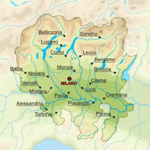 The Lordship of Milan was a state in Northern Italy created in May 1259 following the election of Martino della Torre as lord of Milan. From 1259 to 1277 it was governed by the Della Torre family until, following the Battle of Desio, Napo della Torre was forced to yield his position to Ottone Visconti. The domination of the Visconti dynasty led to a series of territorial conquests that led the family to achieve the title of Dukes of Milan in 1395.
