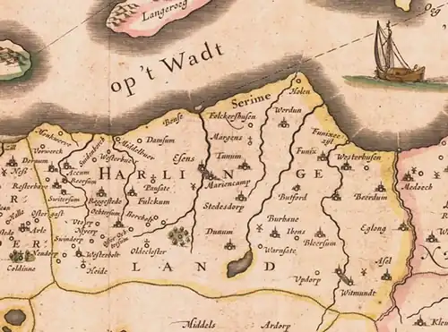 ![]() Esens, Stedesdorf and Wittmund around 1600, by Ubbo Emmius | |||||||||||