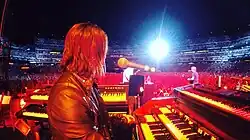 In July 2012, the Who announced Gold as a keyboardist and backing vocalist on their 2012–2013 tour, where they played their album Quadrophenia in its entirety.[5] The tour continued in the summer of 2013 with performances throughout Europe, concluding with a performance at Wembley Arena in London.[6] Between the two legs of the tour, Gold performed at 12-12-12: The Concert for Sandy Relief – a benefit concert that took place on December 12, 2012, at Madison Square Garden in New York City. In addition to the Who, performers included Paul McCartney, the Rolling Stones, Billy Joel, Bruce Springsteen, and Roger Waters. It was the most widely distributed live musical event in history, accessible to nearly two billion people worldwide on television, radio and the Internet.