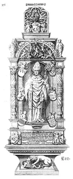 Detail of tomb by Tilman Riemenschneider in Würzburg Dom (cathedral) (c. 1460 - July 7, 1531) in Würzburg Dom (cathedral)