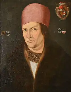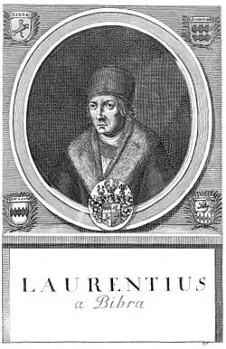 Lorenz von Bibra, Duke in Franconia (1459, Mellrichstadt – 6 February 1519, Würzburg) was Prince-Bishop of the Bishopric of Würzburg from 1495 to 1519. His life paralleled that of Maximilian I (1459–1519), who ruled the Holy Roman Empire from 1493 to 1519, whom Lorenz served as an advisor.