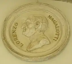 Magalotti started off as one of the most ardent followers of Galileo Galilei[2] but was increasingly distressed by the personal rivalries among the individual members, which constantly undermined the academy's dedication to collective research. Gradually, Magalotti lost interest in science.[3] He became a traveller, an ambassador, and ended up as a poet. He translated Paradise Lost by John Milton, and Cyder by John Philips into Italian.