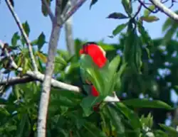 - ^ BirdLife International (2016). "Lorius albidinucha". IUCN Red List of Threatened Species. 2016: e.T22684603A93037395. doi:10.2305/IUCN.UK.2016-3.RLTS.T22684603A93037395.en.