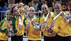 - ^ "Renovada, equipe feminina de ginástica evolui em relação a 2011 e leva o bronze" [Renewed, women's gymnastics team improves compared to 2011 and takes bronze]. Odia (in Portuguese). 13 July 2015. Retrieved 3 July 2024.