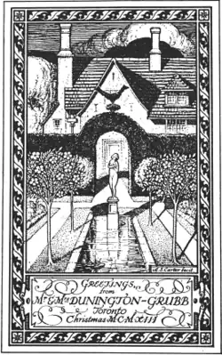 Due to their business, the Dunington-Grubbs mixed with the Toronto elite such as the Eaton, Massey and Gooderham families, hosting and attending important social events.[14] The Dunington-Grubbs were at the center of a small group of landscape artists that used to meet in the garden of the Diet Kitchen Restaurant, on Bloor Street. In 1934 they founded the Canadian Society of Landscape Architects.[15] In 1944 Lorrie became president of this society.[3]