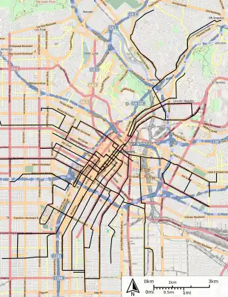 - H Line – South Los Angeles to East Hollywood; by way of San Pedro Street, 7th Street, Broadway, 6th Street, Rampart Boulevard, Beverly Boulevard, Heliotrope Drive, and Melrose Avenue.