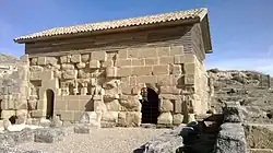 Mausoleum of the Sádaba Synagogue A Roman mausoleum made of opus mixtum, with rigging made of ashlar and brick, a cruciform plan with two exedras appended to the sides, and unequal arms. The monument follows architectural parallels from the Constantinian era, 4th century CE., similar to Sant Miquel de Egara (Tarrasa) or Centcelles (Constantí, Tarragona). It was likely associated with a sumptuous villa, of which some remains are preserved a few meters from the mausoleum. On April 17, 2015 the Geometric Documentation of Heritage Laboratory (LDGP) of the University of the Basque Country, presented an exhaustive work on the remains of this mausoleum, documenting its state of conservation at that time and making its results public for future studies or restoration work.[73][74]