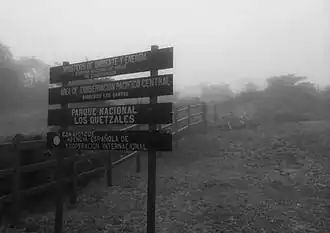 ![]() Visitor entrance to Los Quetzales National Park. | |