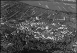 The peat bogs of Arcegno, the rock shelters of Quarigo and the rock carvings in soapstone and gneiss appear to confirm that Losone has been inhabited since the Neolithic period. In 1934 and again in 1970–73 grave goods from the 1st to 4th centuries were found. There are also traces of a further use of the grave yard in the 6th century as well. The modern municipality of Losone is first mentioned in 1061 as Loxono though this is from a 1402 copy of the original. In 1200 it was mentioned as de losono.[3] During the Middle Ages the settlement or borgo included the so-called Bassa Losone, Arcegno and until 1807, Vosa im Onsernonetal. It formed a Vicinanza in the parish of Locarno and had its own statutes and laws. The status of an independent Vicinanza was confirmed in 1734. Losone owned rights to alpine pastures in the valleys of Bosco/Gurin, Onsernone and Vigezzo. The people paid to the nobles of Locarno a tithe on vineyards and grain. In 1799, Losone opposed the Helvetic authorities who wanted to create a political municipality. Even after it became a political municipality in 1803, the Vicinanza played an important political and economic role.[3]