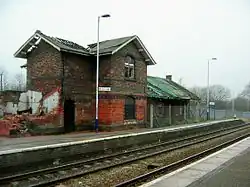 The station opened for passengers as Lostock on 1 January 1863 as part of the Cheshire Midland Railway. The station was renamed to Lostock Gralam later in 1863.[1] Goods traffic started from 1 May 1863; the goods yard was to the south of the station and was equipped with a 5-ton crane. The goods yard closed on 3 August 1964.[2][3] For many years the station had a run-down appearance and had been downgraded to a request stop. The main station building was demolished on 8 July 2007.