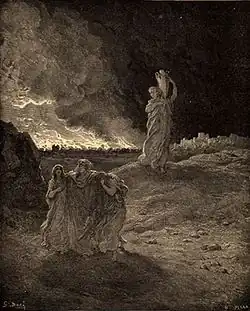 Lot (/lɒt/; Hebrew: לוֹט Lōṭ, lit. "veil" or "covering";[1] Greek: Λώτ Lṓt; Arabic: لُوط Lūṭ; Syriac: ܠܘܛ Lōṭ) was a man mentioned in the biblical Book of Genesis, chapters 11–14 and 19. Notable events in his life recorded in Genesis include his journey with his uncle Abraham; his flight from the destruction of Sodom and Gomorrah, during which his wife became a pillar of salt.[2]