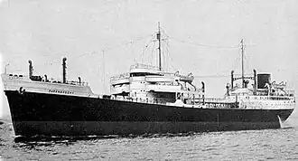 The ship was powered by a four-stroke Single Cycle Single Acting diesel engine which had eight cylinders of 28.75 inches (73.0 cm) bore by 63 inches (160 cm) stroke. The engine was built by Gebroeders Stork &Co, N.V., Hengelo, Overijssel.[6] It drove a single screw propeller. Rated at 3,700 brake horsepower (2,800 kW), the engine could propel the ship at 12 knots (22 km/h; 14 mph).[7]